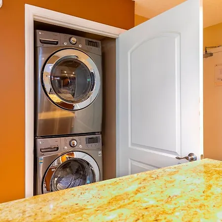 A microwave, a refrigerator and a washing machine are available.