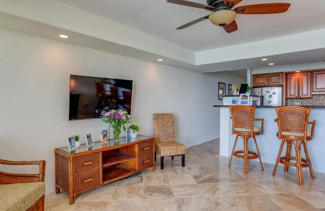 The 1-room Kahana Reef # 310 condo apartment is located next to the beachfront 1 - acre Pohaku Park and is equipped with free parking and a golf course. Set in the Kahana district, the apartment lies within 4.3 km of Mahana Ridge Trail.
