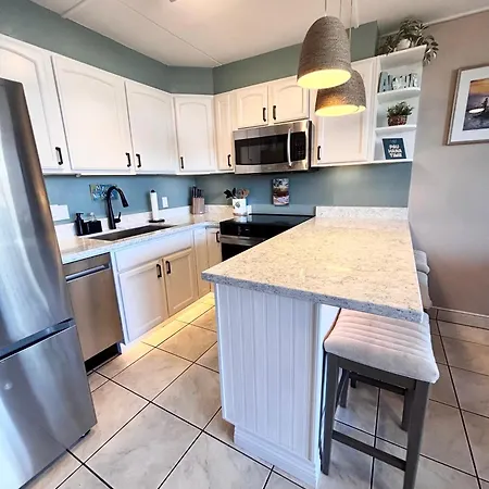 The apartment includes a fully equipped kitchen.